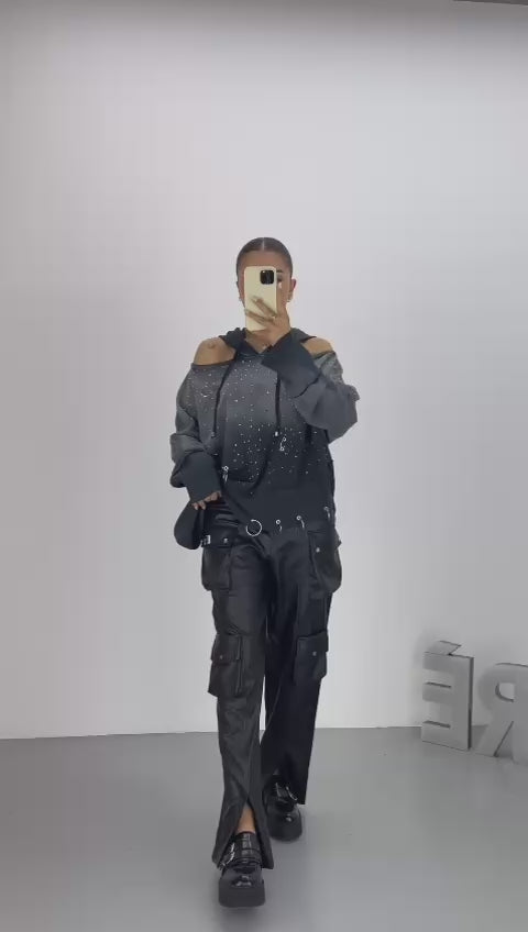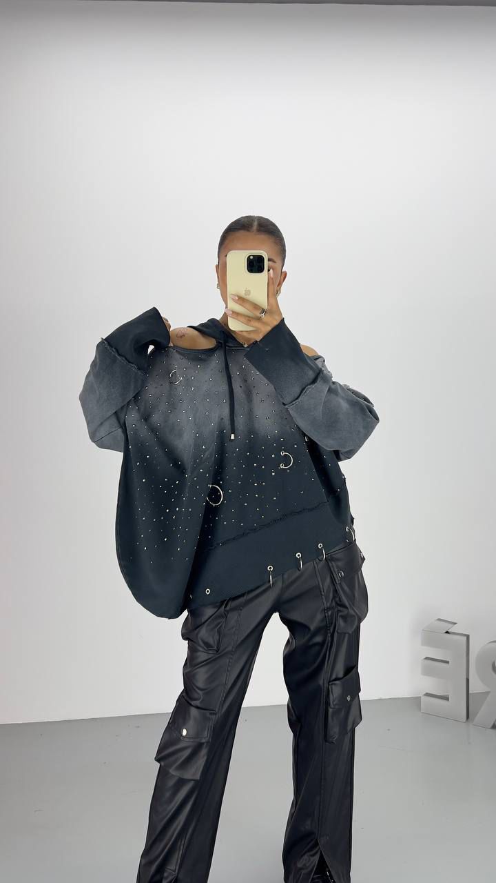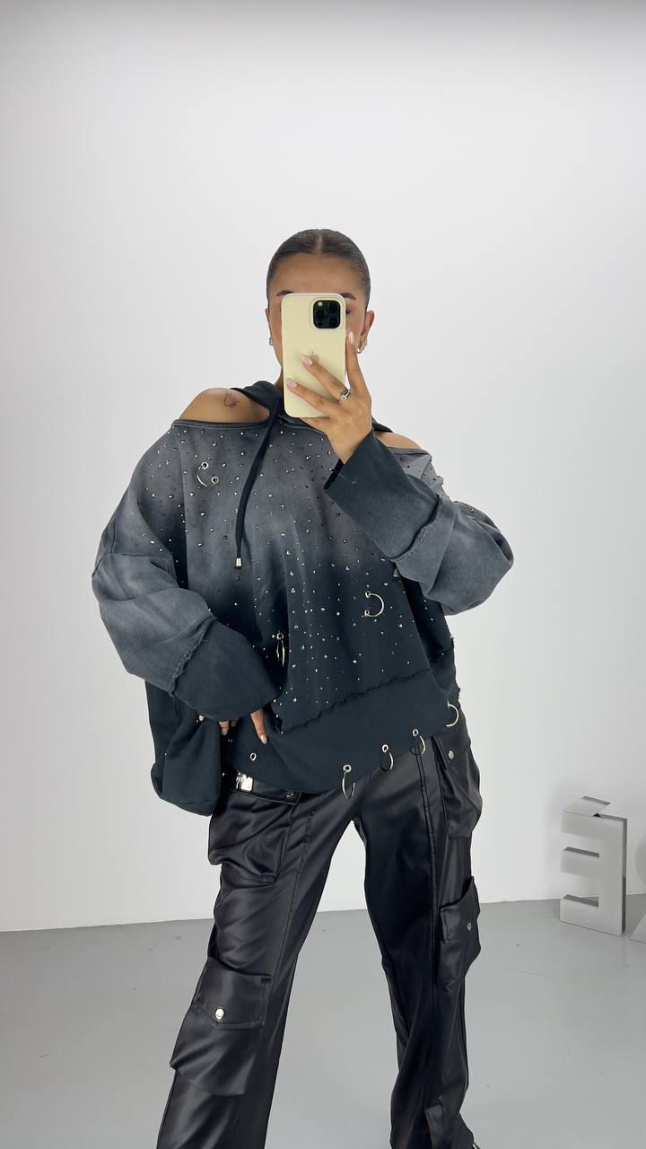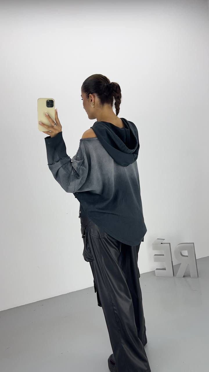 OPEN SHOULDERS SWEATER IN DARK GREY