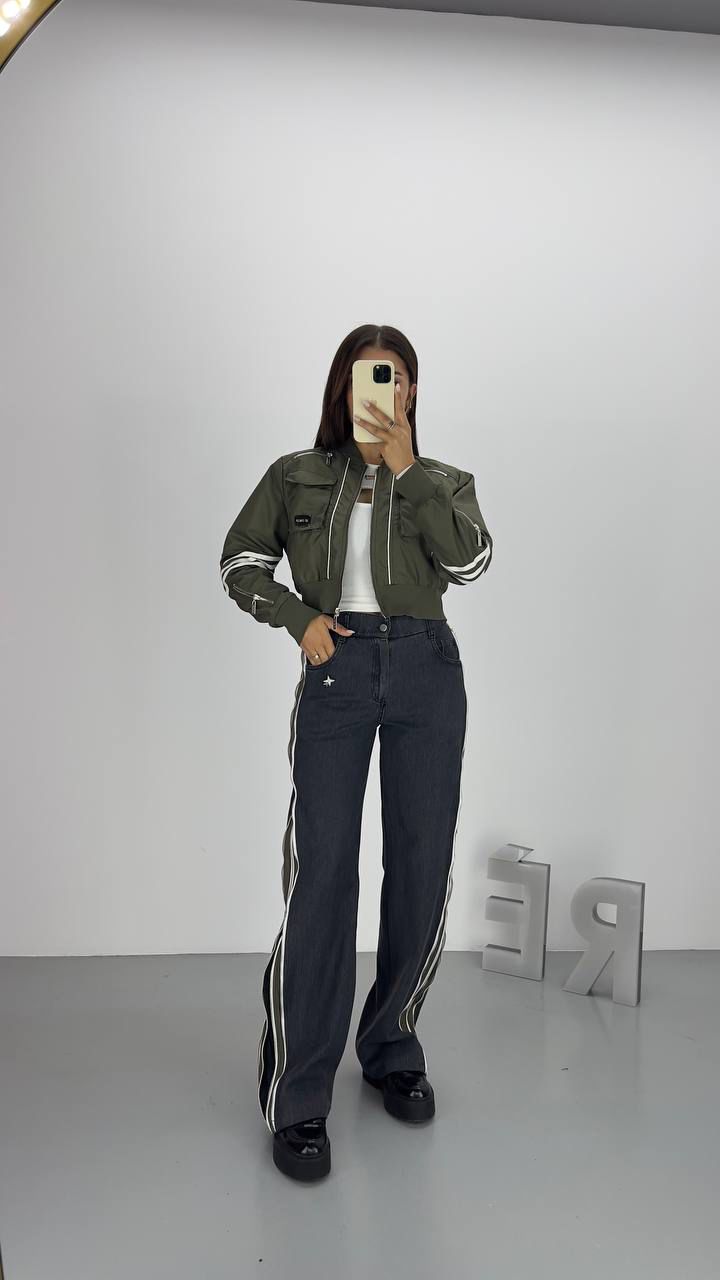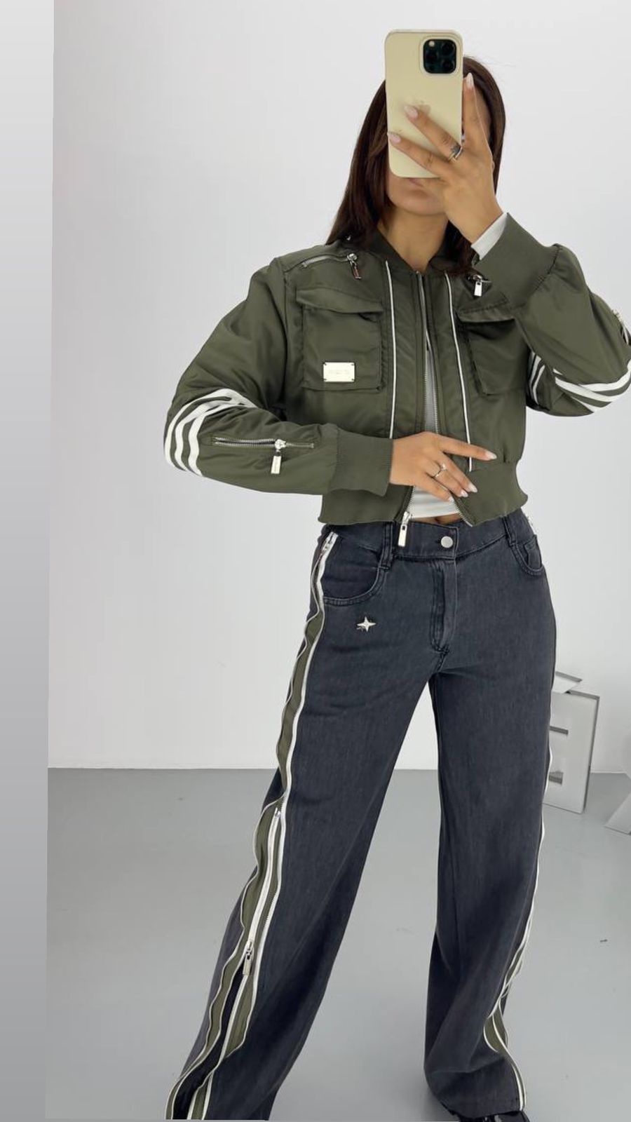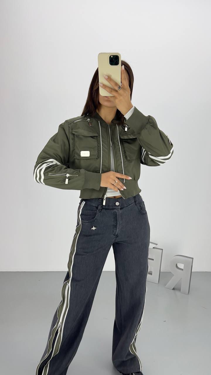BIKER JACKET WITH ZIPPER IN OLIVE