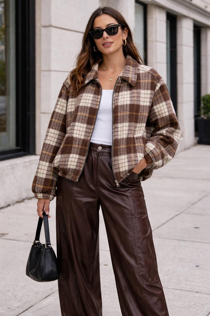 Bomber Plaid Jacket In Brown