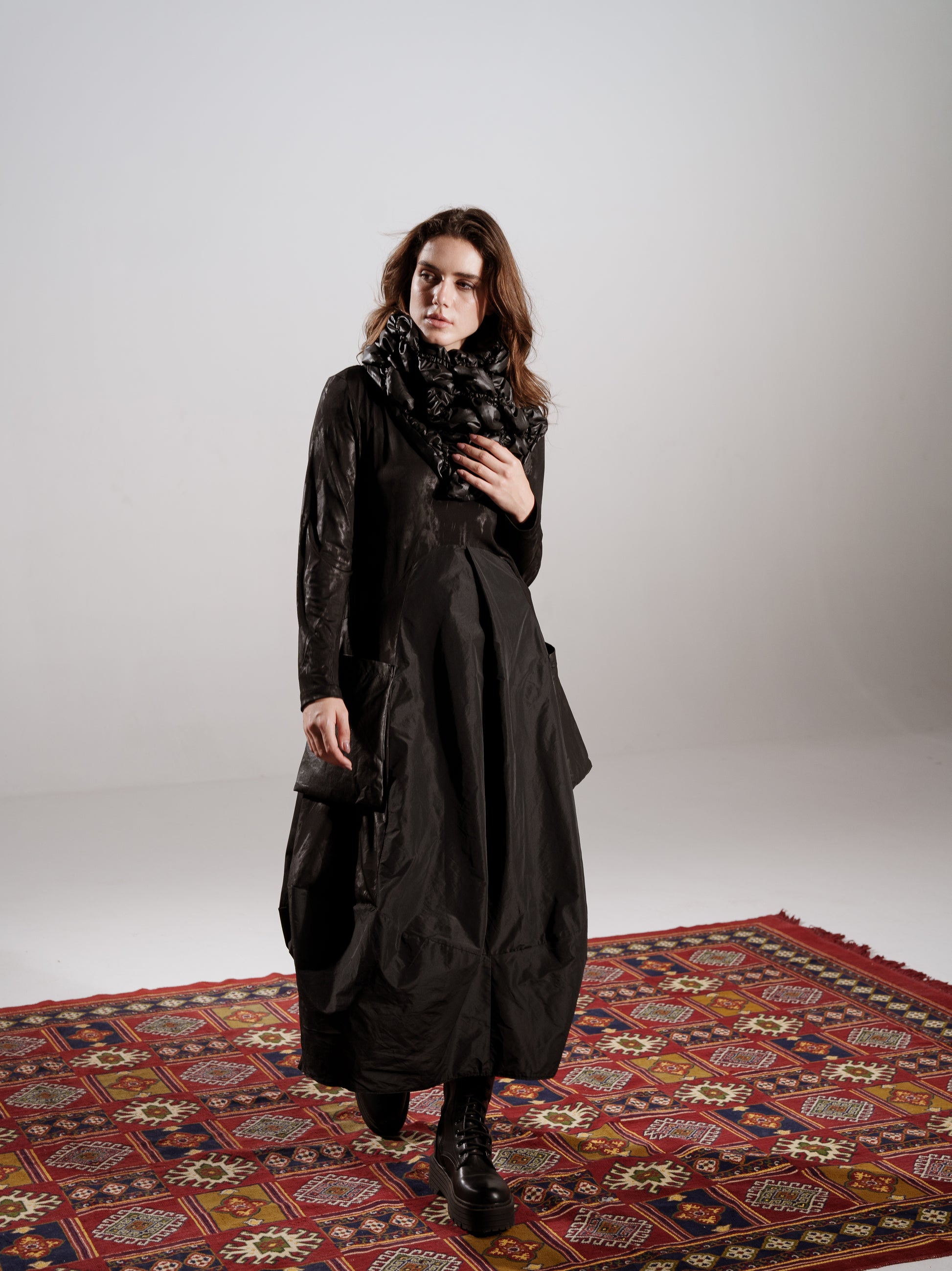 Noir Cocoon Dress With Scarf