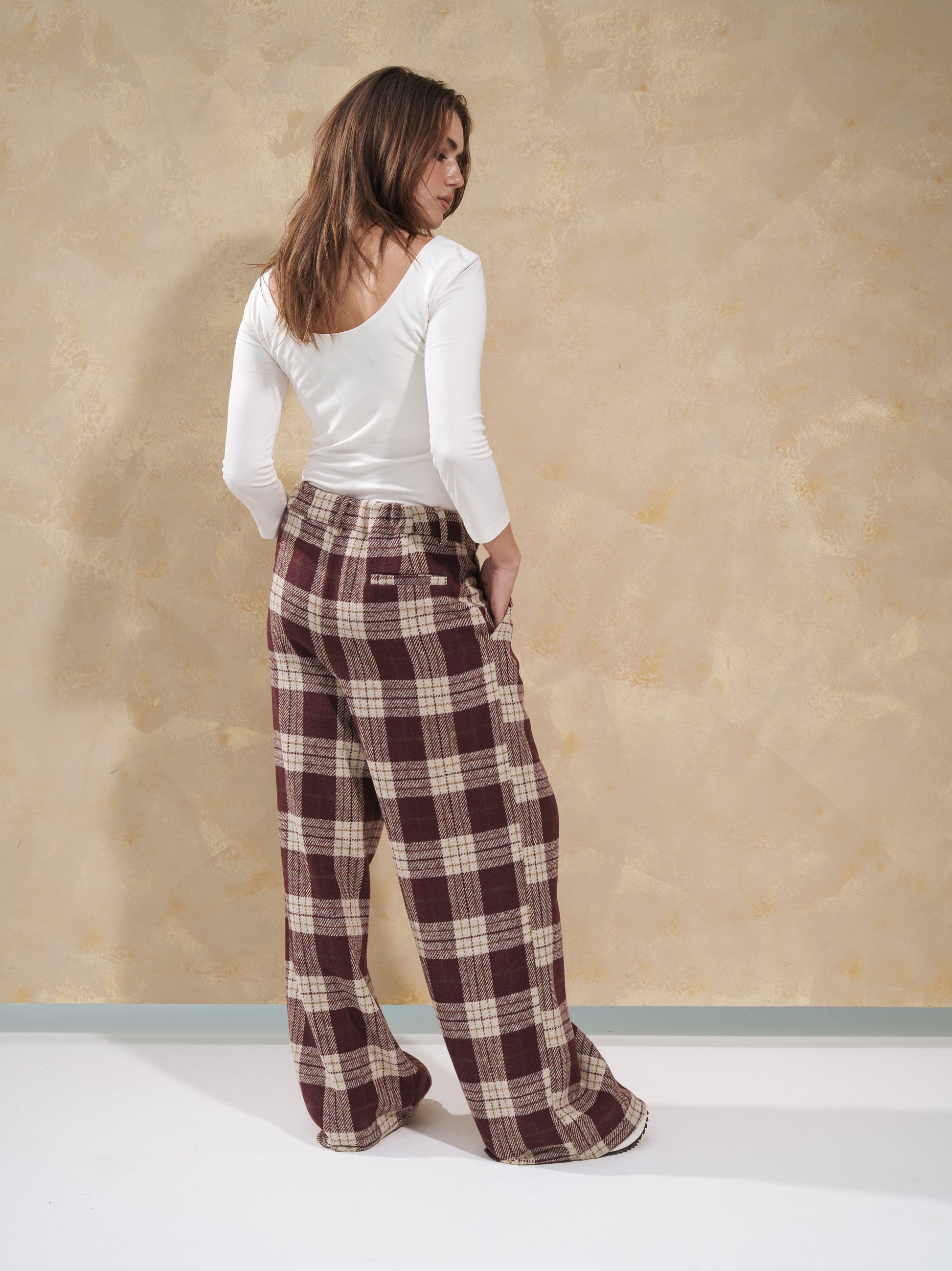 Plaid Wide-leg Pants In Burgundy
