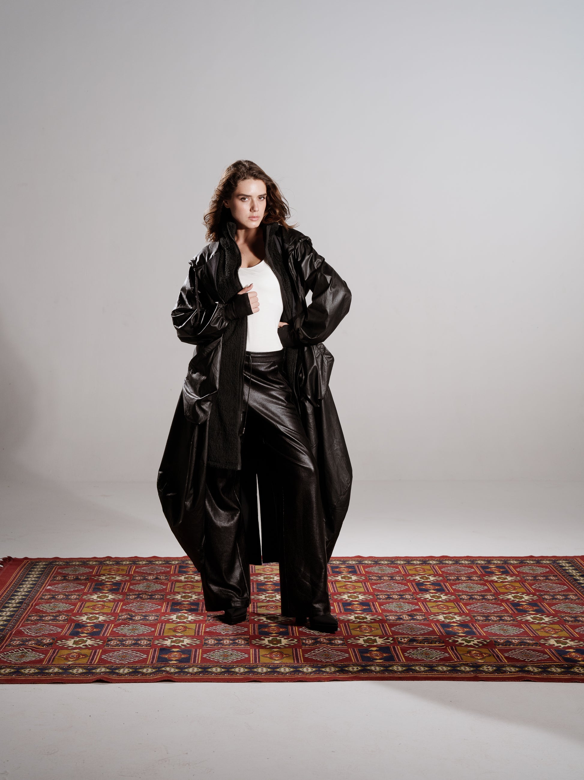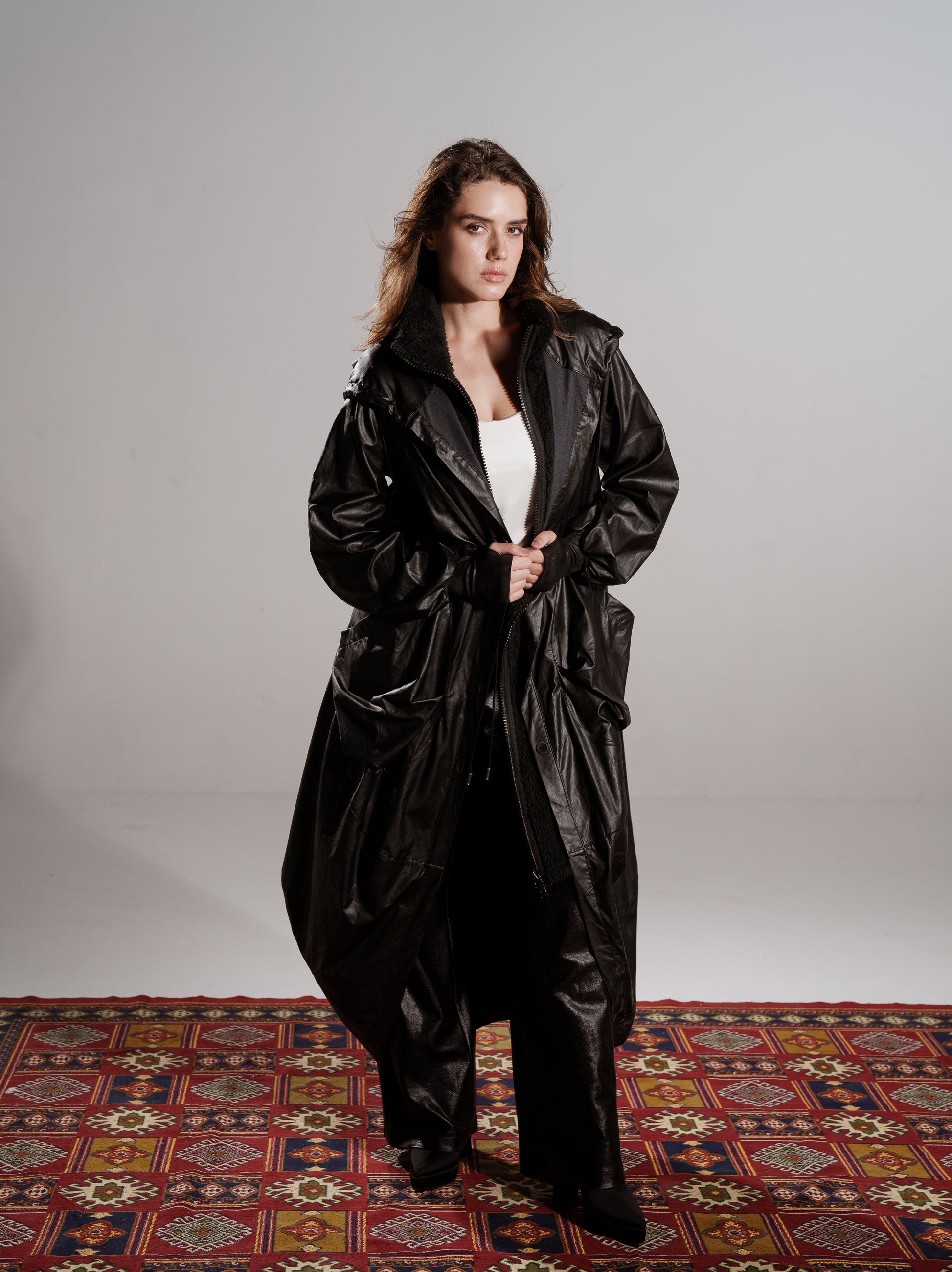 TWO PIECES LEATHER COAT